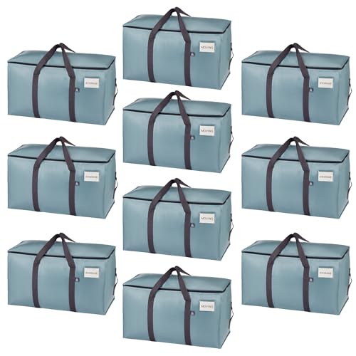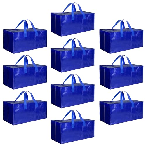 HealSmart 10 Pack Extra Large Moving Bags with Zippers & Carrying Handles, Heavy-Duty Storage Tote Moving Boxes for Dorm Room Essentials Storage Bags, Blue