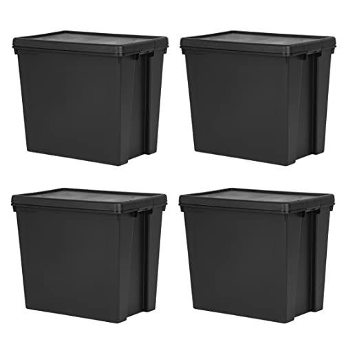 (Set of 4) 92L 92 Litre Recycled Heavy Duty Super Strong Storage Boxes Containers With Secure Lid Boxes Storage Containers Organizing Basket For Home Office Storage (92 LITRE, Black Bam)