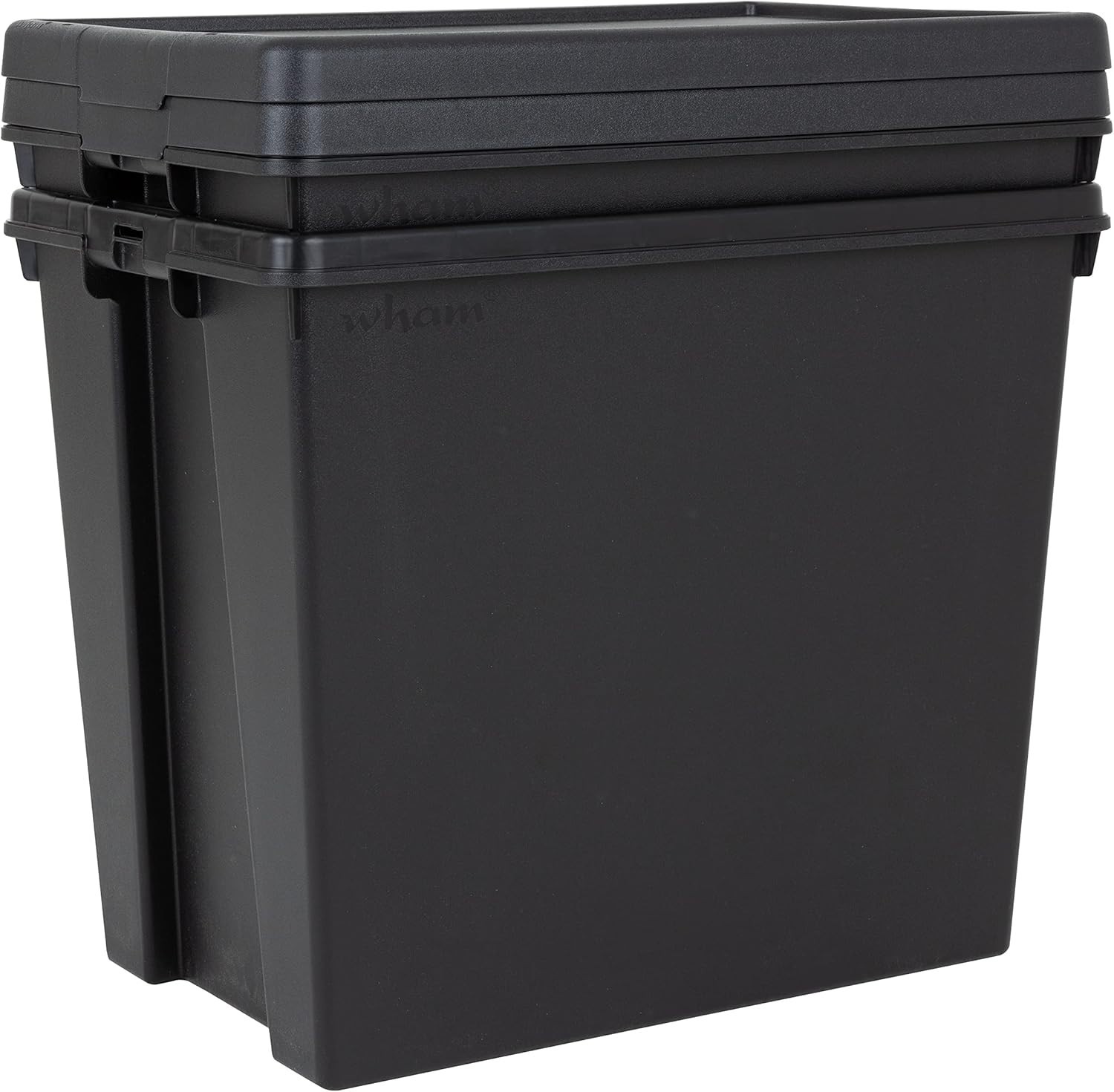 Wham 2 Black 16L Heavy Duty Storage Boxes Plastic 38.5 x 29 21.5cm
