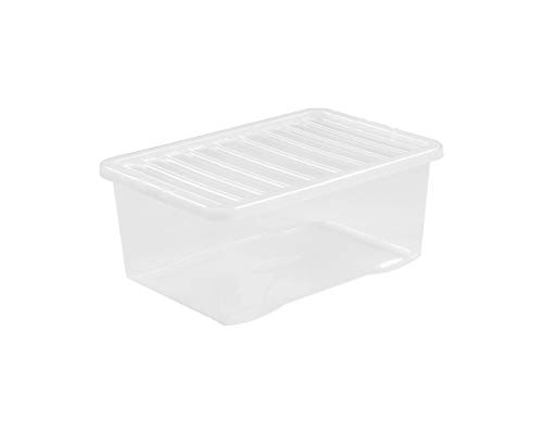 "Wham 45 Liter Storage Clear Heavy Duty Plastic Storage Box Boxes With Lids Home Office Stackable Nestable, Set of 5 Large Storage Boxes With Lids ?59 x 41.2 x 39.9 cm"