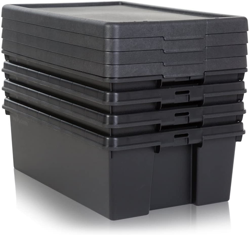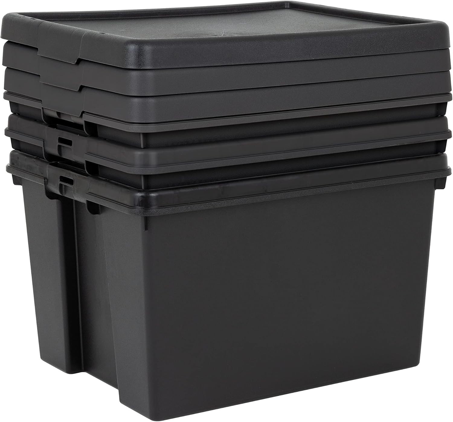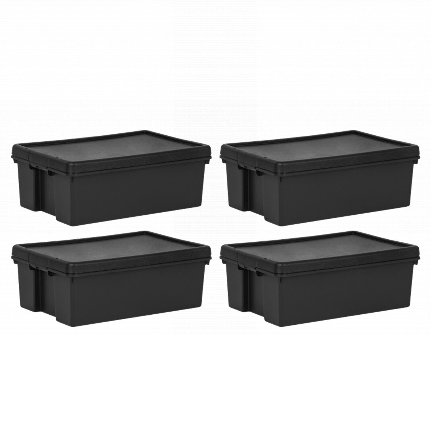 4 x 36L Black Heavy Duty Recycled Plastic Storage Boxes with Lid Containers