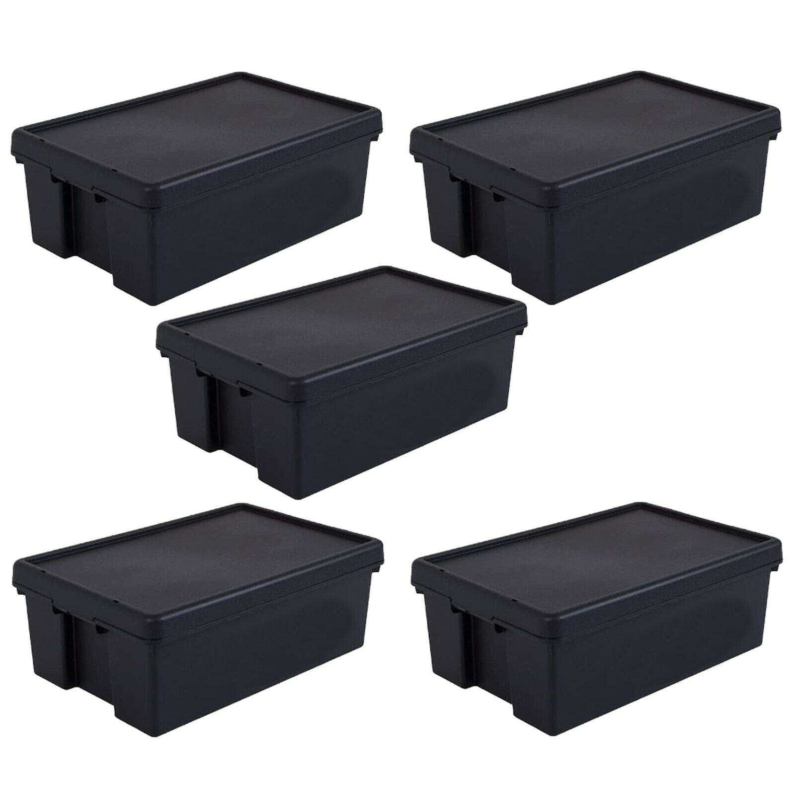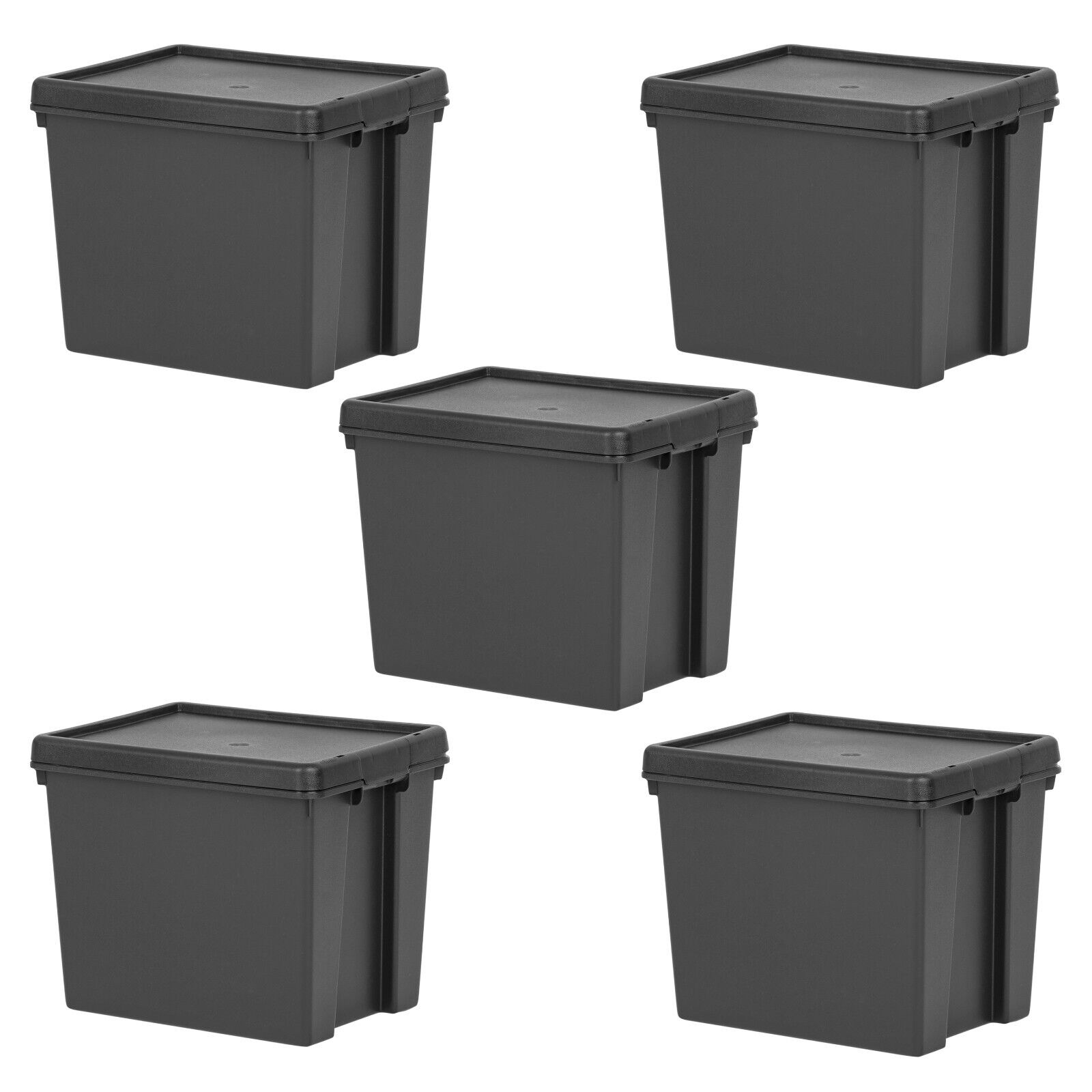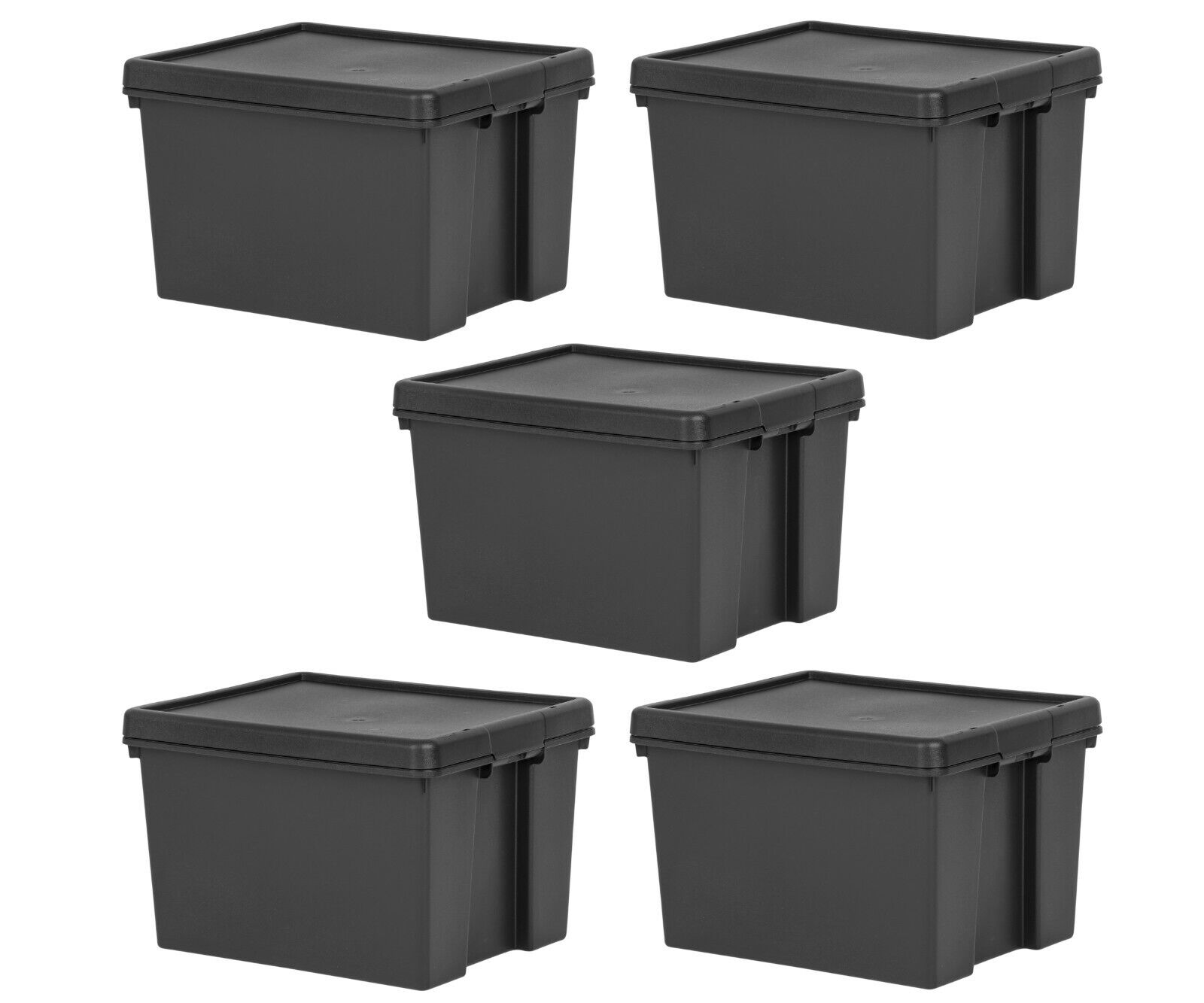 5 x 36L Heavy Duty Storage Boxes With Lid Recycled Plastic Containers Home Black