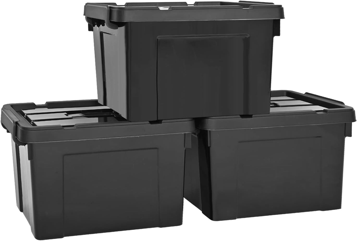 3 x 92L Heavy Duty Recycled Plastic Storage Boxes with Lids Container BLACK