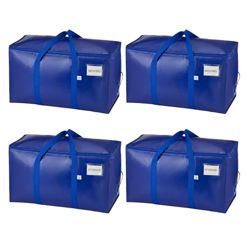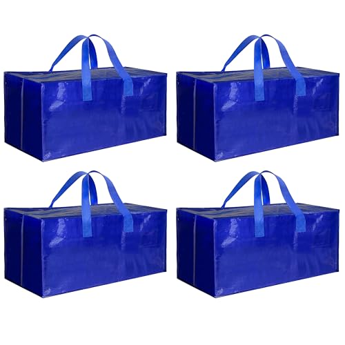 HealSmart 4 Pack Extra Large Moving Bags with Carrying Handles & Zippers, Heavy-Duty Storage Tote Moving Boxes for Dorm Room, Blue
