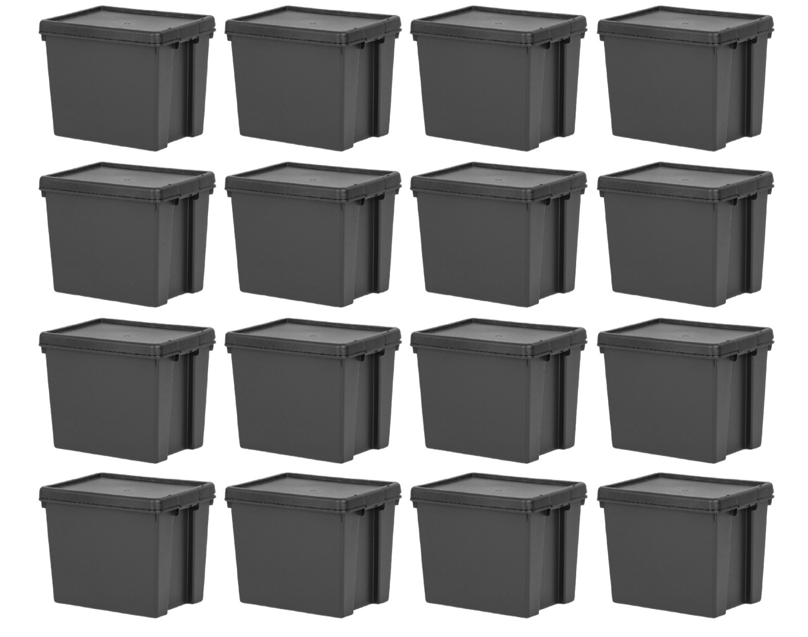 16 x 24L Heavy Duty Recycled Plastic Storage Boxes with Lids WHOLESALE BULK BUY