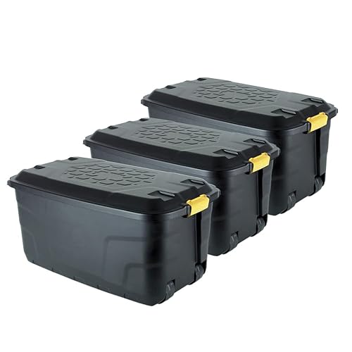 Strata 110L Wheeled Heavy Duty Storage Boxes, 3 Pack - Home & Kitchen Organization, 50.5cm x 77cm x 42cm
