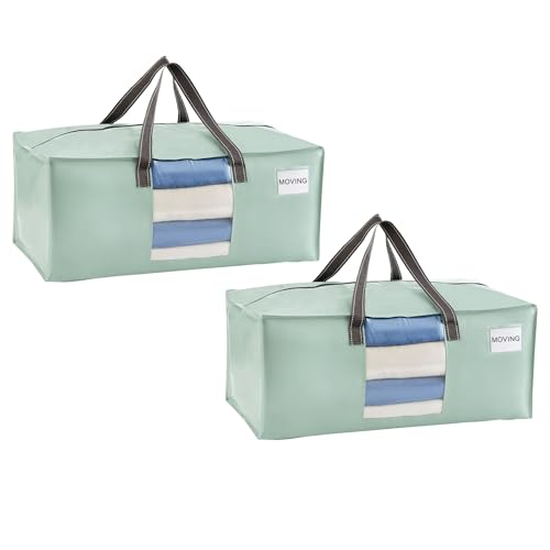 VENO 2 Pack Moving Bags Extra Large Storage Bags for College Move-In, Heavy-Duty Storage Totes, Packing Boxes, and Wardrobe Moving Supplies - Durable Laundry Bags for Clothes (Light Green, 2 Pack)