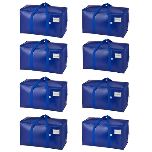 VENO 8 Pack Extra Large Moving Bags with Zippers & Carrying Handles, Heavy-Duty Storage Tote Moving Boxes for Space Saving (Blue-8 Pack)