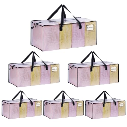 VENO 6 Pack Moving Bags Extra Large Bags for Chritsmas Storage, Heavy-Duty Storage Totes, Packing Boxes, and Wardrobe Moving Supplies - Durable Laundry Bags for Clothes (Clear, 6 Pack)