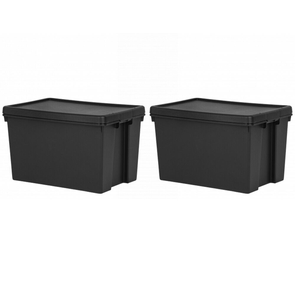 2 x 62L Black Heavy Duty Plastic Storage Boxes With Lids Recycled Container UK