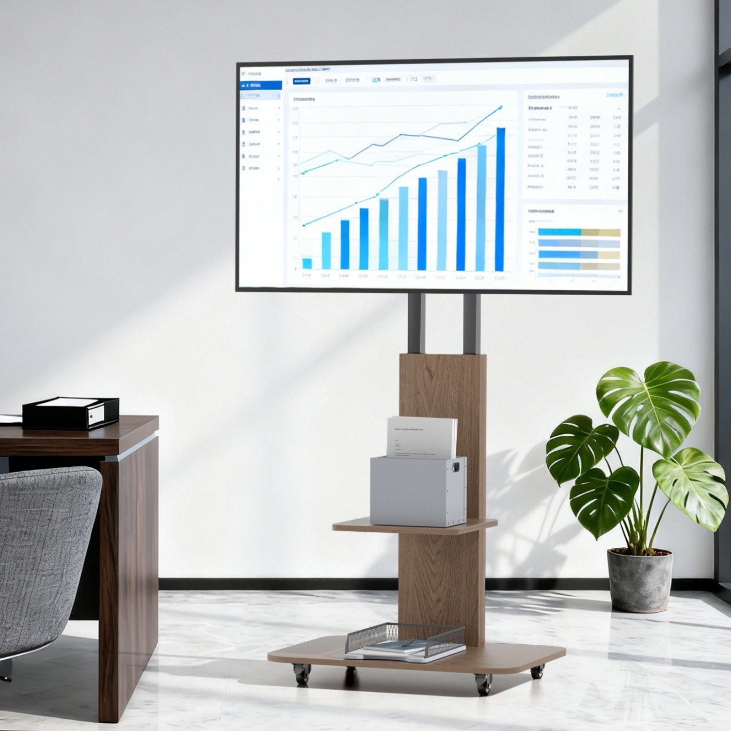 Heavy-Duty Adjustable Rolling TV Stand with Storage Drawer and Power Outlet for Floor-Mounted Televisions