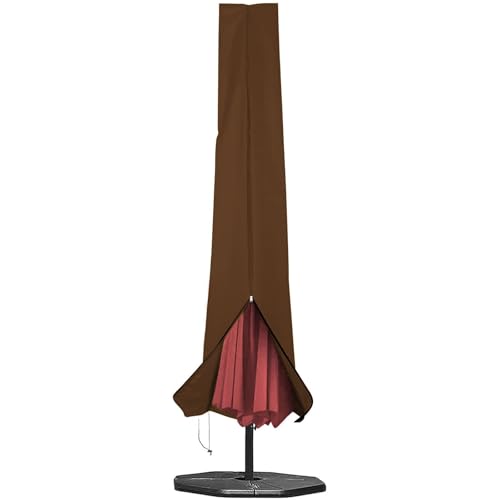 RICHIE Garden Parasol Cover for Garden Umbrella Covers Fit 2.5 to 4m Diameter Parasols 190x25x50cm Waterproof 600D Oxford PVC Coating with Heavy-duty Zip and Adjustable Drawstring Cord at Bottom,Brown