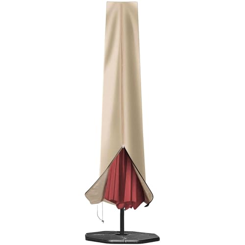 RICHIE Garden Parasol Cover for Garden Umbrella Covers Fit 2.5 to 4m Diameter Parasols 190x25x50cm Waterproof 600D Oxford PVC Coating with Heavy-duty Zip and Adjustable Drawstring Cord at Bottom,Beige