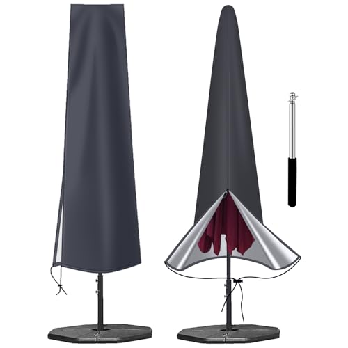 Kunmuzi Parasol Cover Waterproof with Rod, Cantilever Parasol Covers Heavy Duty 3m Large Garden Umbrella Cover for Cantilever Parasol (265cm)