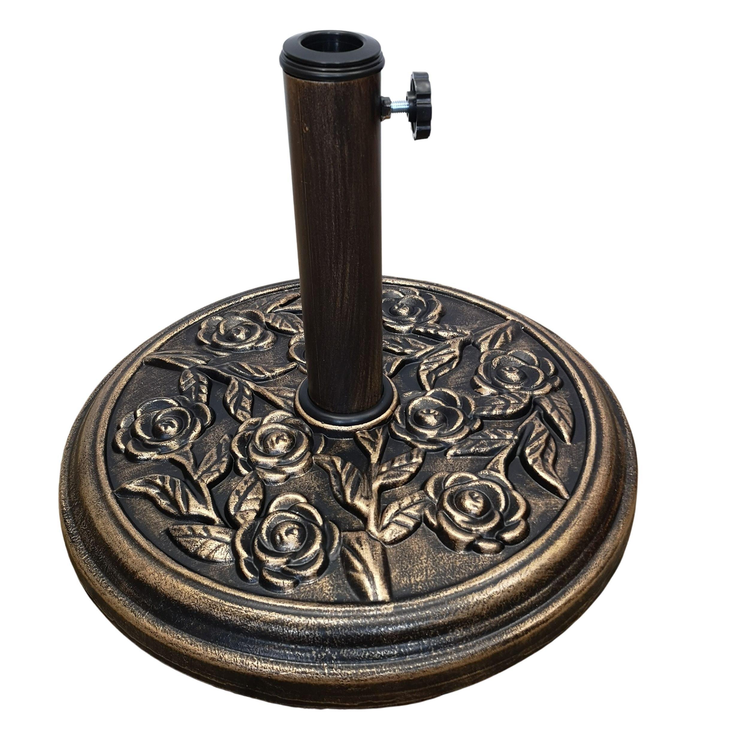 Samuel Alexander 9kg 45cm Diameter Bronze Parasol Bases Heavy Duty Cast Iron Effect Floral Rose Design Outdoor Garden Furniture Umbrella Canopy Outdoo