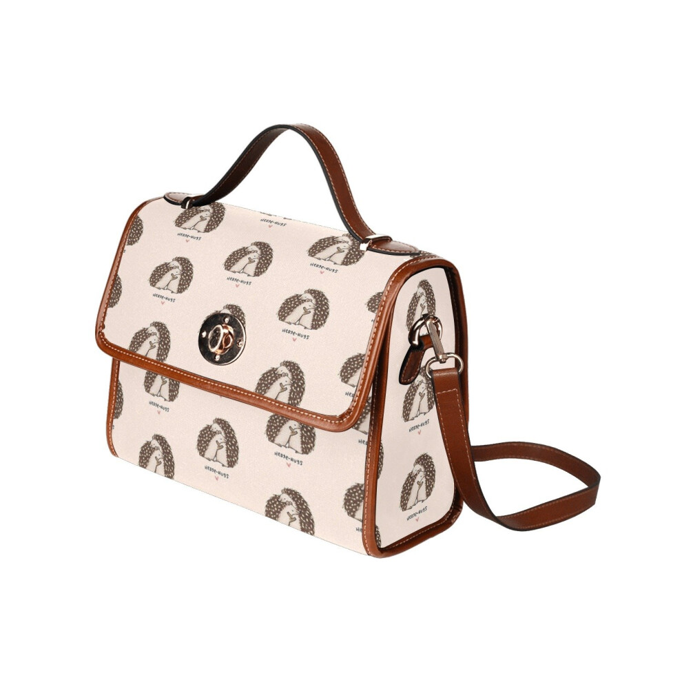 (Hedge-hugs_11476) Canvas Crossbody Handbag with Lock Top All Over Print Retro Messenger Bag for Women, Girl Brown Trim & Adjustable Shoulder Strap Wa