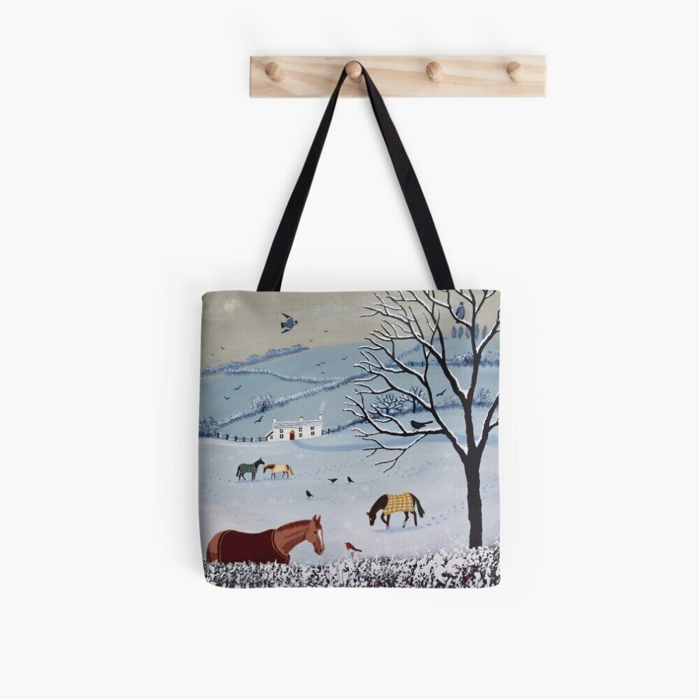 Tote Bags Over Snowy hedge Grocery for School Library Gym