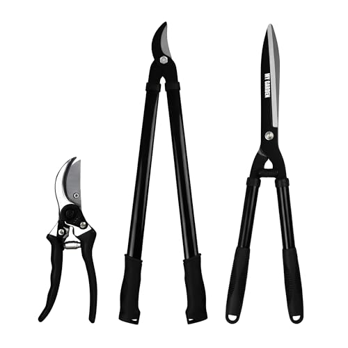 My Garden Hedge Shears Pruner Bypass Loppers Set of 3 – Pruning Secateurs Hedging Shear & Tree Loppers with Ultra Sharp Blade Soft Grip Handle for Cutting, Trimming Shrubs & Bonsai