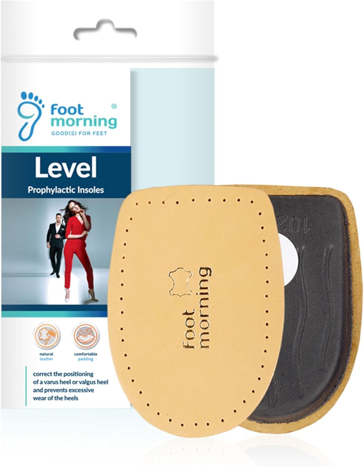 Foot Morning – Level Heel Cushions for Shoes & Boots (1 Pair) – Beige Leather & Foam Cushion for Realignment – Self-Adhesive Leg Adjust Aid for Men & Women (2-4 UK)