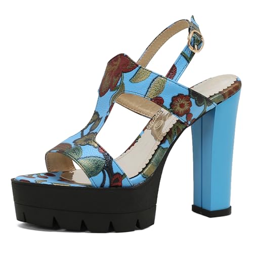 Gicoiz Peep Toe Block Heels Platform Women Slingback Sandals Party Slingback Elegant Ankle Strap Summer Wedding High Heeled Shoes Blue Size 2-35