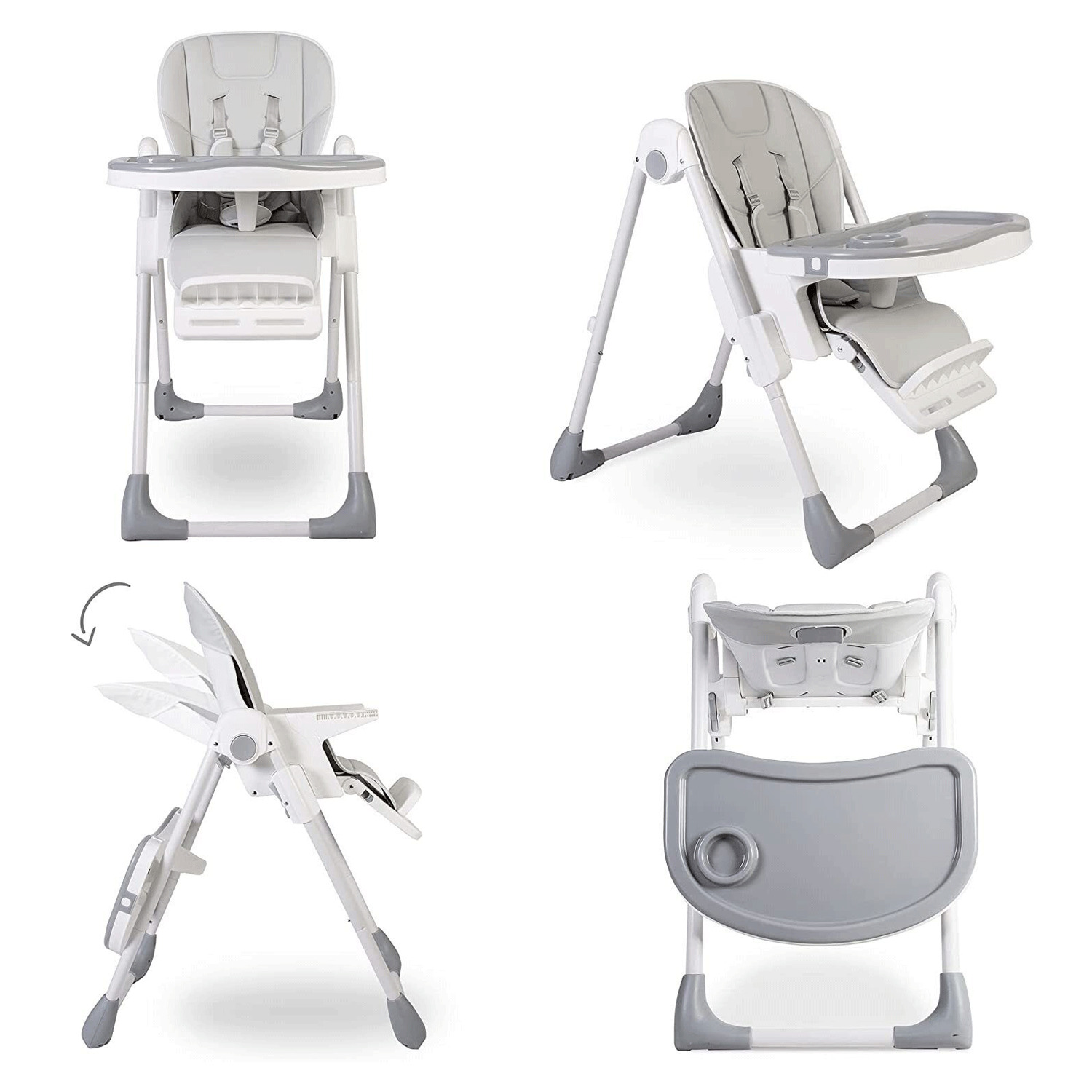 HighChair Feeding Table Padded Seat Folding 3 in 1 Baby Toddler Infant Reclining Height Adjustable Feeding High Chairs with Removable Tray 5 Point
