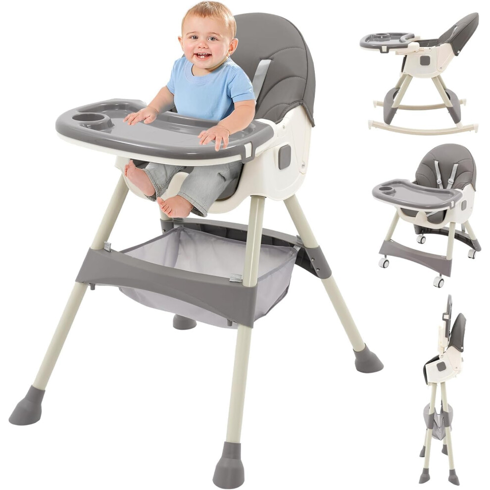 Ezebaby Baby Highchair, Foldable and Adjustable Baby Chair, 6 Height Settings, 4 Recline Positions, 3 Tray Positions, Adjust Footrest, Portable High