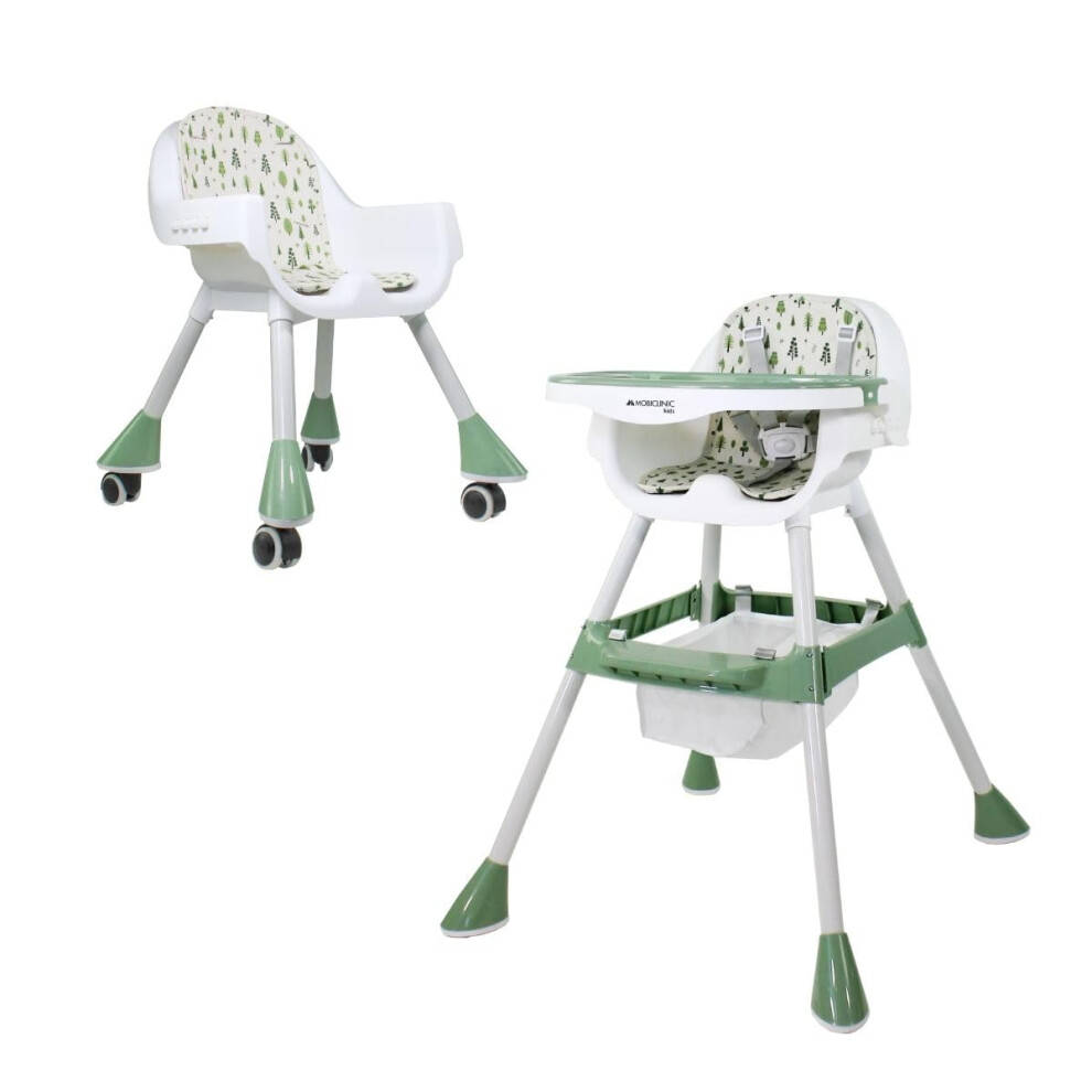 Mobiclinic?, High Chair, 2 in 1, Adjustable Height, Baby Highchair, Double Tray, Baby and Toddler Chair, 5-Point Safety Harness, Removable Wheels, Up