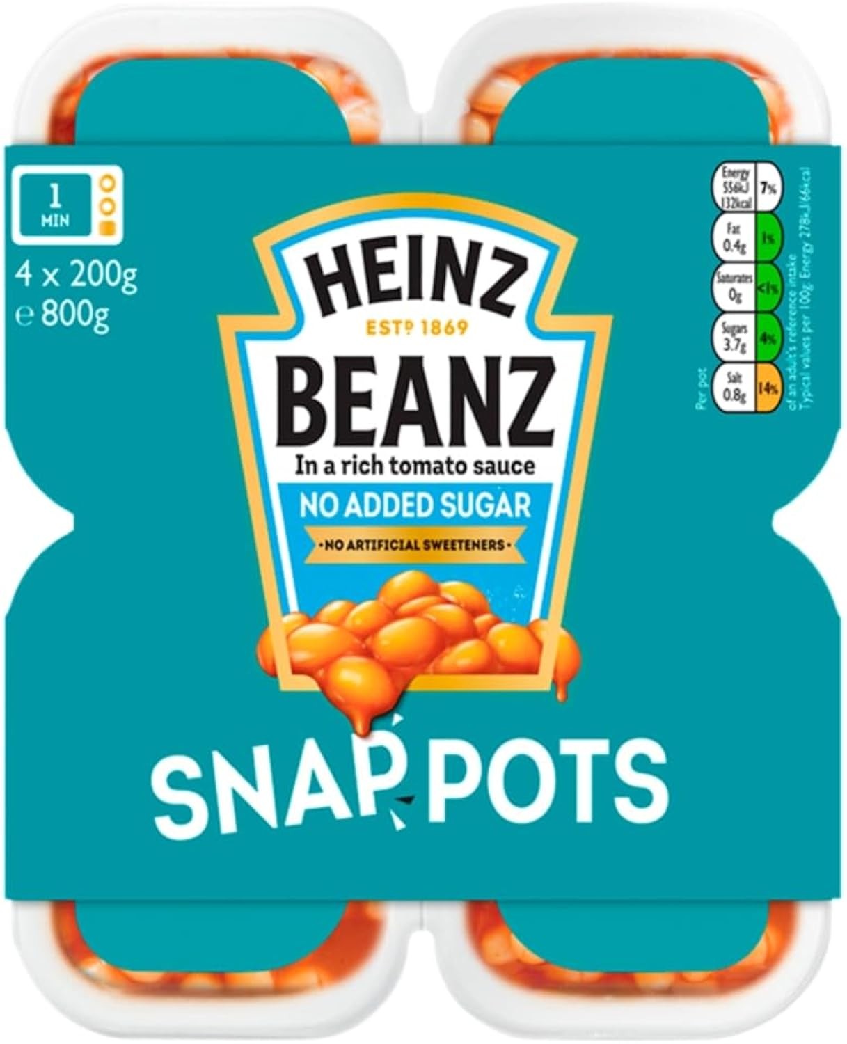 Heinz Baked Beans Snap Pots 200g (4 pack) 200 g (Pack of 4), Green