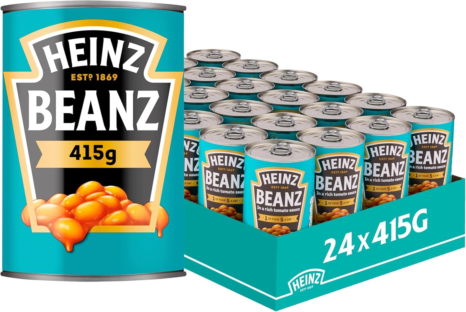 24 x 415g Heinz Beanz Baked Beans In Tomato Sauce Rich Flavour Tin Cans