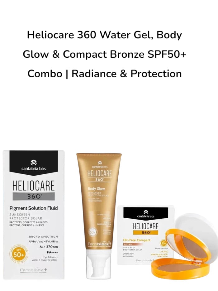 Heliocare 360 Water Gel, Body Glow & Compact Bronze SPF50+ Combo |Radiance