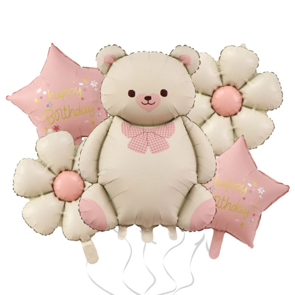Bär Folienballon mit Gänseblümchen Folienballon, 5 Stk Bär Geburtstagsdeko 1 Jahr Mädchen, Ballon Deko 1.Helium Ballons für Waldtiere