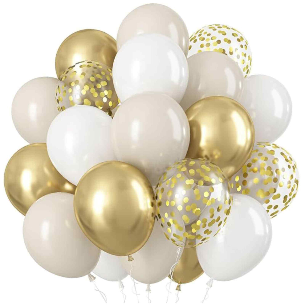 60 Stück Luftballons Gold WeiÃ, Helium Luftballons Gold WeiÃ,Luftballons Weisse, Latex Ballons Set,Metallic Gold Luftballons,Weisse Latex Ballons