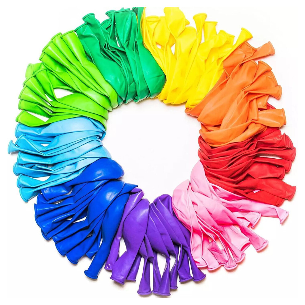 Rainbow Party Balloons 100 Pack Metallic Multicoloured, Large 12 Inch Thick Latex Biodegradable Helium Party Ballons for Birthday, Wedding, Baby Shower Events Decoration Arch Garland