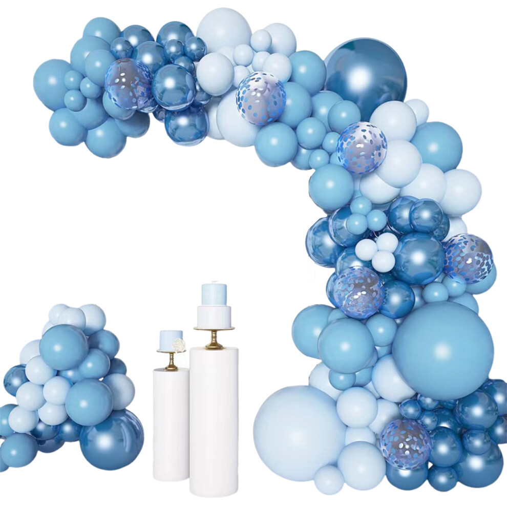 106 Stück Luftballons Blau, Blau Luftballon Girlande Set,Hellblau und Metallic Blau mit Konfetti Ballons, Babyparty Deko Junge,Blau Weià Helium