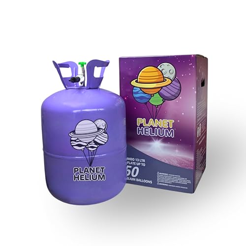Planet Helium Balloon Canister (13L for 50 Balloons) - 99.9% Pure Helium Gas Compatible with Standard 9" Balloons. Helium Tank for Balloon Inflation.