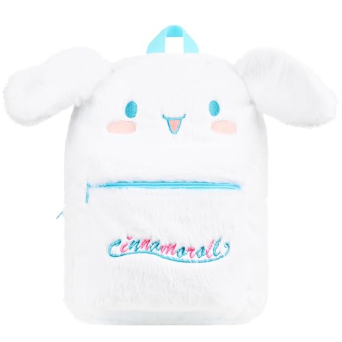 Hello Kitty Fluffy Girls Backpack Cute Plush Kawaii Rucksack Kids Teens Travel Fashion Daypack Bag, Anime Girls Gifts (White Cinnamoroll)