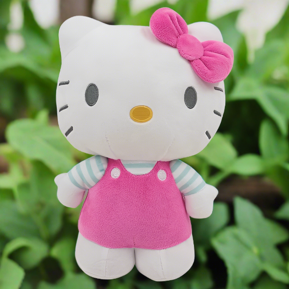 Hello Kitty 40cm Plush Hot Pink Dress Blue Stripe Shirt