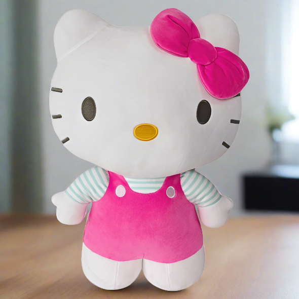 40cm Standing Hello Kitty - Hot Pink Dress with Pale Blue Stripes Shirt Plush