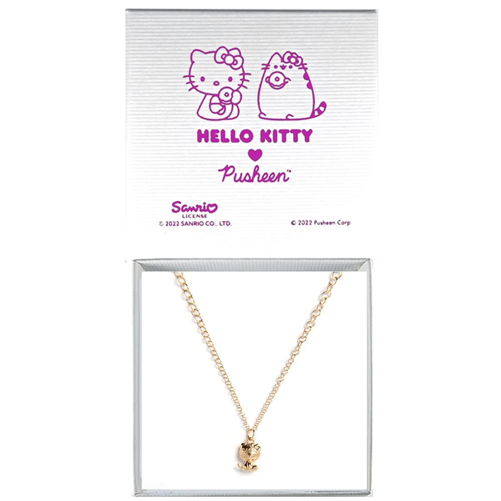 Hello Kitty & Pusheen - 18ct Gold Vermeil Pusheen as Hello Kitty Charm Necklace
