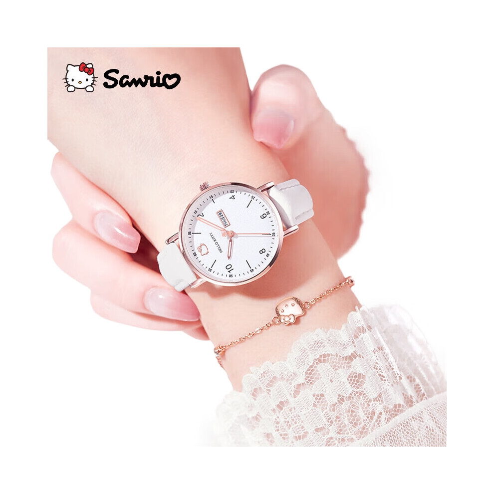 (Hello Kitty White) Sanrio Hello Kitty Watch Kawaii Kuromi Cinnamoroll Quartz Casual Fashion Melody WristWatch Women Kid Girl Children Birthday Gift