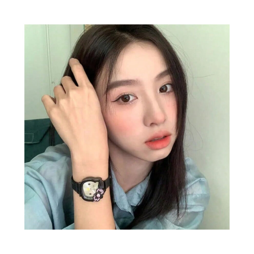 Cute Hello Kitty Rotary Watch for Female Students - Kawaii Ladies Wristwatch Ideal Birthday Gift for Girls & Teens