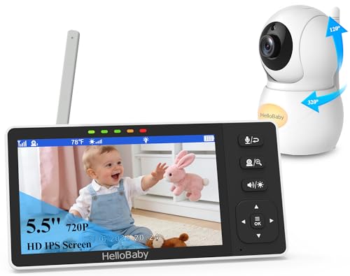HelloBaby Baby Monitor with 1080P Baby Camera,Video Baby Monitor with Camera and Night Vision, 5.5’’ Split IPS Screen, No WiFi, ECO Mode, 2-Way Audio, Pan-Tilt-Zoom, 1000ft, Temp Display, Night Light