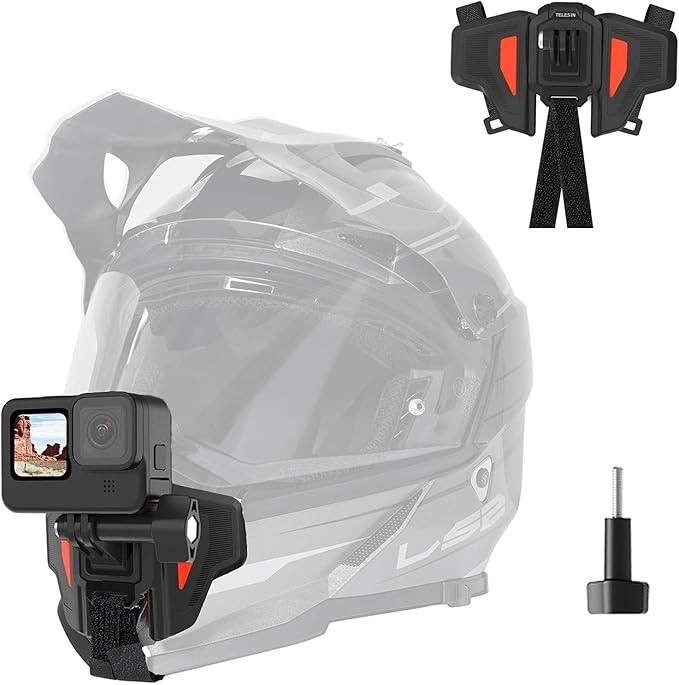 TELESIN Motorcycle Helmet Chin Mount for GoPro Hero 11, 10, 9, 8, 7, 6, Insta360 X3, ONE X2, ONE X, DJI OSMO Action, Non-Slip Silicone, Easy to Install, Action Camera Accessories (2nd Generation)