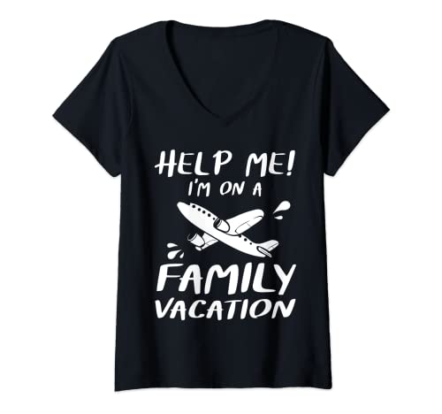 Womens Help Me! I'm On A Family Vacation Holiday Beach Travel 2022 V-Neck T-Shirt