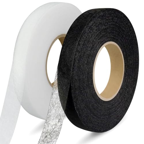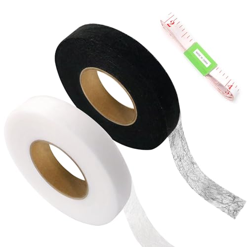 2 Pack Iron on Hemming Web(64 Meters/Roll) Tape for Trousers, Wonder Web Hemming Tape, 70 Yards Iron On Hem Tape,Sewing Tape for Jeans,Splicing Fabrics,Curtain,Garment,Cloth, 2 cm Wide, Black + White
