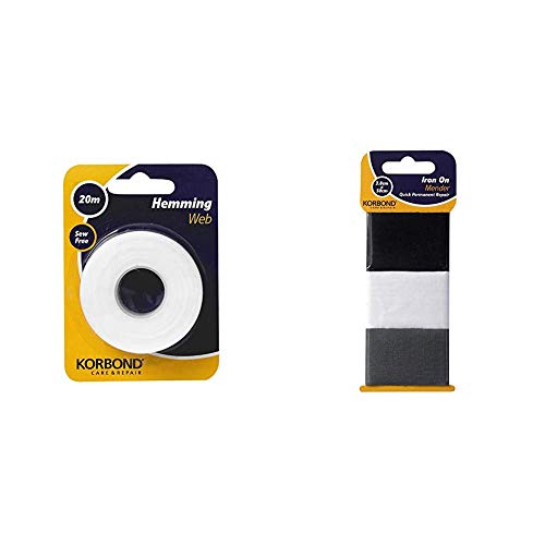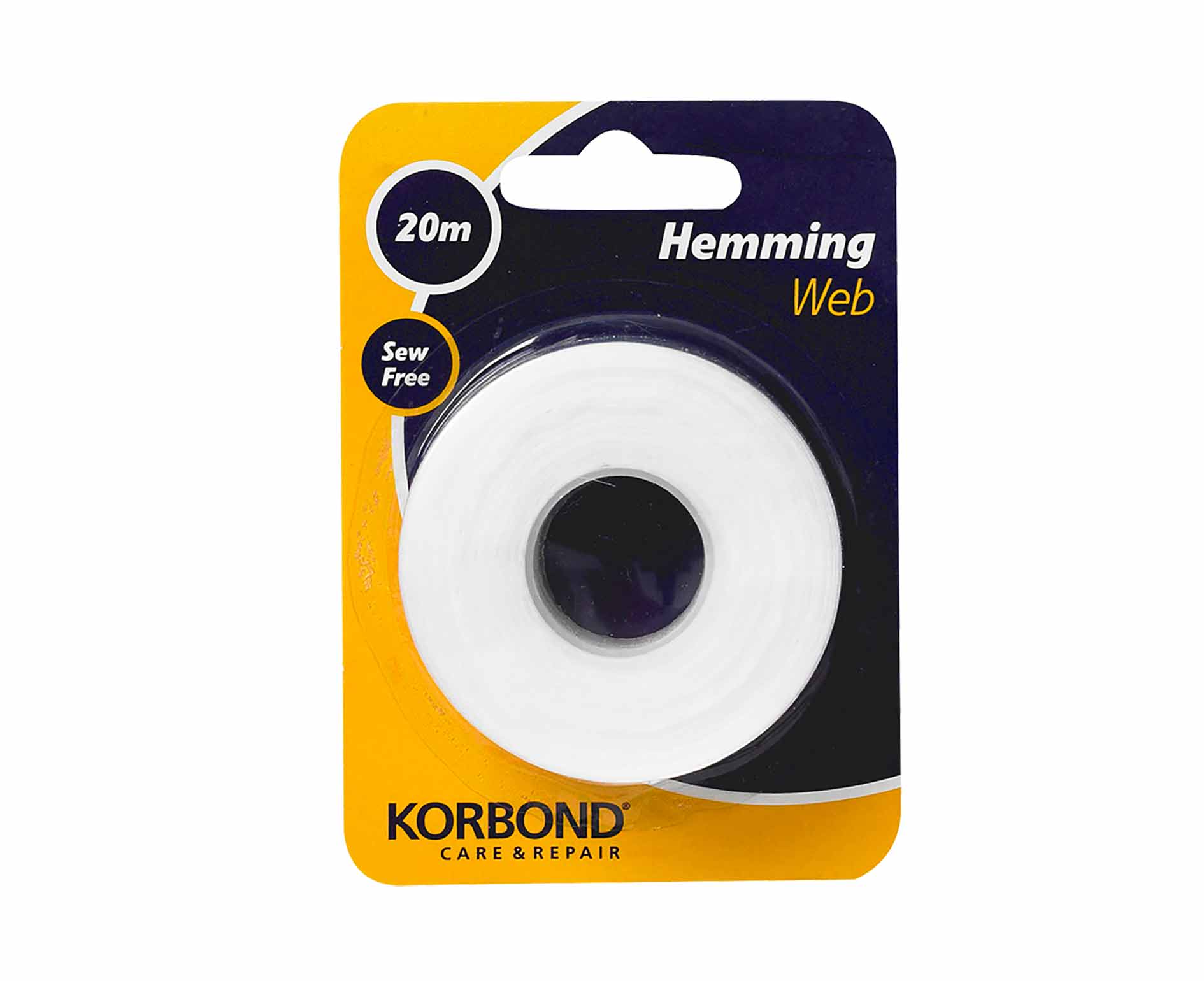 Korbond Hemming Web 20m x 2cm - White – Iron On Hem Tape - NO Sewing Required Adhesive Fabric Tape, Webbing Tape, Hemming Tape
