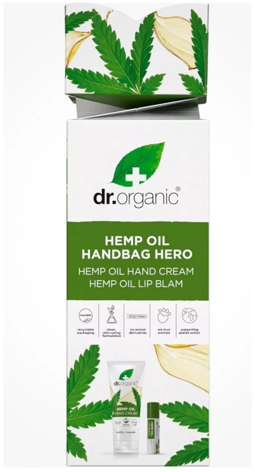 Dr Organic Hemp Oil Hand Bag Hero Gift Set, with Hand Cream & Lip Balm, Moisturising, Restoring, Natural, Vegan, Cruelty-Free, Paraben & SLS-Free, Recycled & Recyclable, Organic
