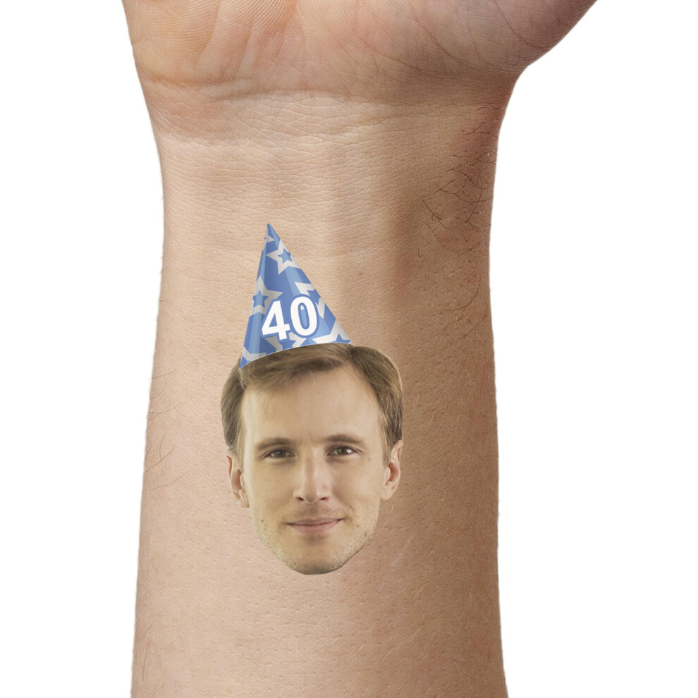 Custom Temporary Tattoos, Custom Tattoo, Your Face with a Party Hat, Party Accessory, Stag Dos, Hen Parties. Birthdays, Party Favours, Events Tattoo
