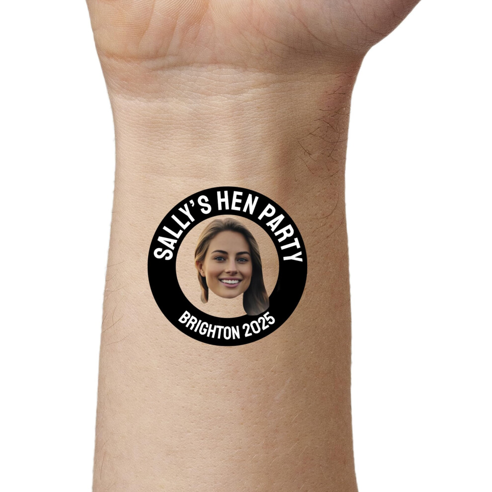 Custom Temporary Tattoos, Custom Tattoo, Black Circle with Your Face, Party Accessory, Stag Dos, Hen Parties. Birthdays, Party Favours, Events Tattoo