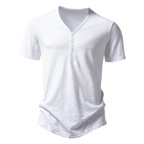 Mens Henley T Shirts Cotton, Tshirts Men Uk, Summer Classic Rergular Fit Lightweight Short Sleeve Lightweight Solid T-Shirt with Button Closure Summer Fitted Tee Casual Top